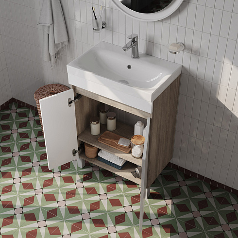 Компактная напольная тумба для ванной Zodiac с распашными дверцами – удобство и практичность в сочетании с лаконичным скандинавским дизайном.