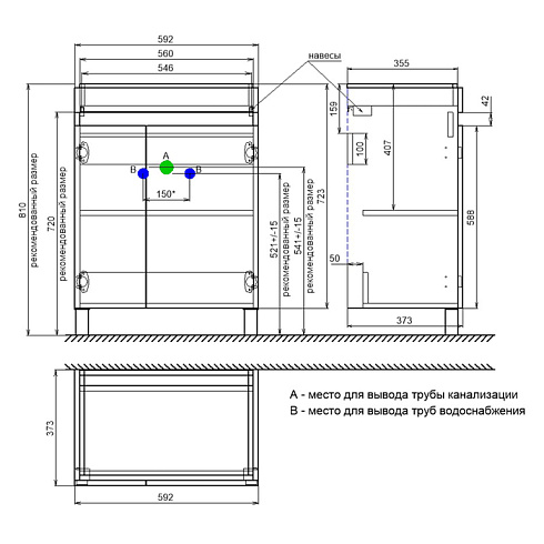 • В комплекте белые пластиковые ножки 100 мм и сифон, за счет чего тумба полностью готова к установке.