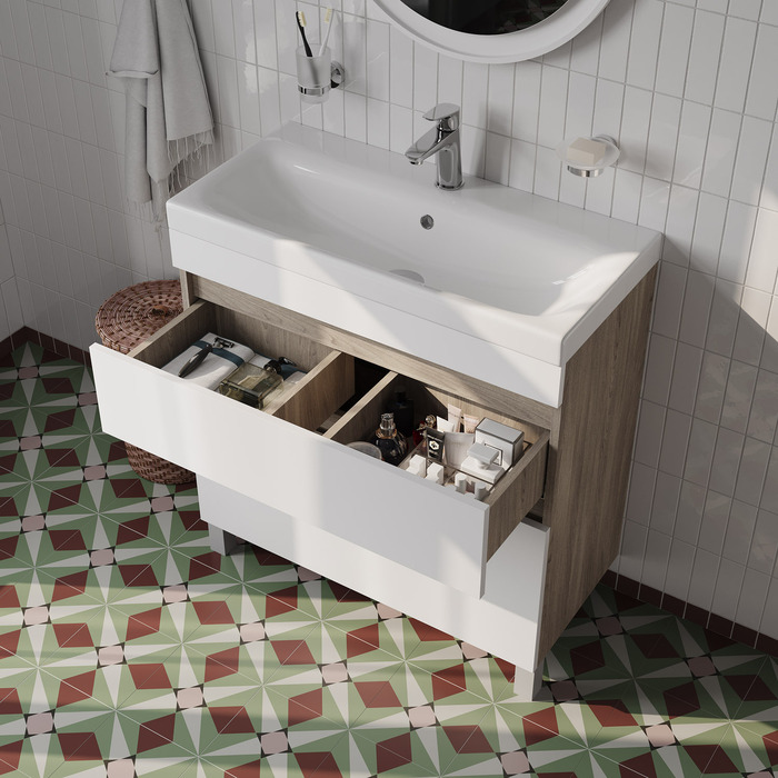 Напольная тумба для ванной Zodiac с ящиками – удобство и практичность в сочетании с лаконичным скандинавским дизайном.