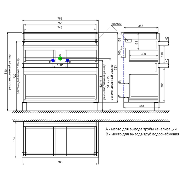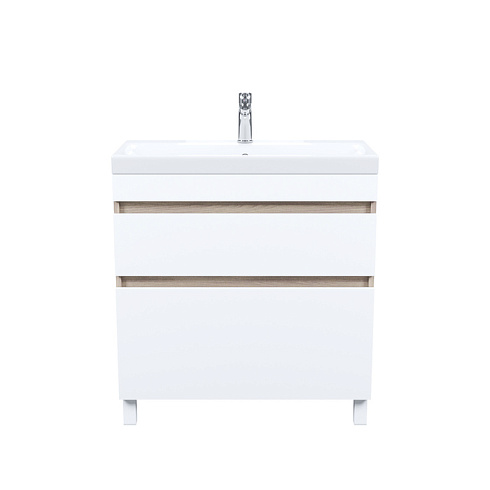 • В комплекте белые пластиковые ножки 100 мм и сифон, за счет чего тумба полностью готова к установке.