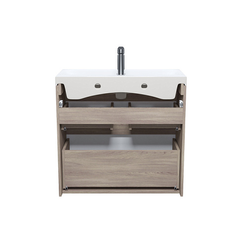• Два вместительных выдвижных ящика с механизмом плавного доведения закрываются плавно и бесшумно. Интегрированные ручки. Фурнитура рассчитана на 30 000 открываний, что составляет более 10 лет исправной работы.