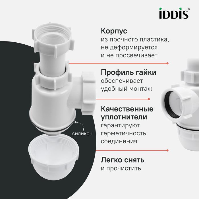 • Сифон уже собран, что исключает риск повреждений и ошибок при монтаже.