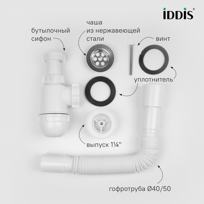 • Сифон уже собран, что исключает риск повреждений и ошибок при монтаже.