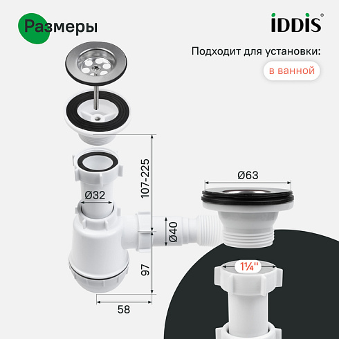 - Сливной диаметр, мм (Сифоны) 1.1/4"