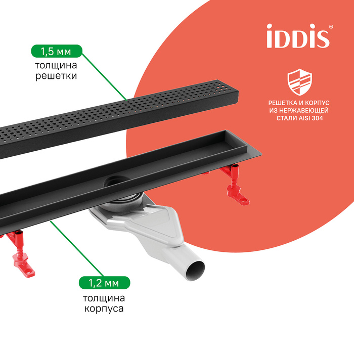 Душевой лоток IDDIS® в черном цвете с горизонтальным выпуском и сифоном 360° предназначен для отведения воды в канализацию из зоны принятия душа. Он заменит традиционные поддоны с бортиками, предлагая универсальный дизайн решетки и возможности для создания стильного интерьера ванной комнаты. Длина решетки — 500 мм; подходит для плитки толщиной до 12 мм.