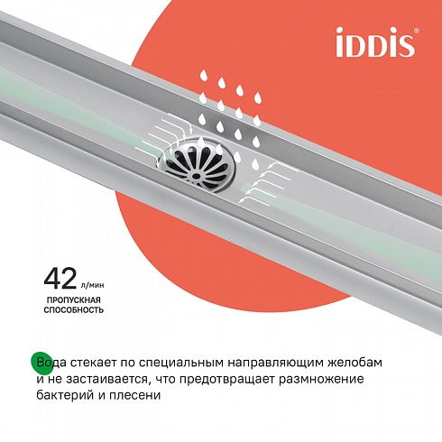 Душевой лоток IDDIS® с двусторонней решеткой, горизонтальным выпуском и сифоном 360° предназначен для отведения воды в канализацию из зоны принятия душа. Он заменит традиционные поддоны с бортиками, предлагая универсальный дизайн решетки и возможности для создания стильного интерьера ванной комнаты. Длина решетки — 500 мм; подходит для плитки толщиной до 12 мм. Цвет – хром.