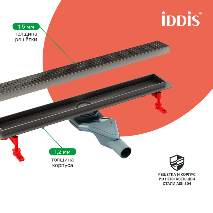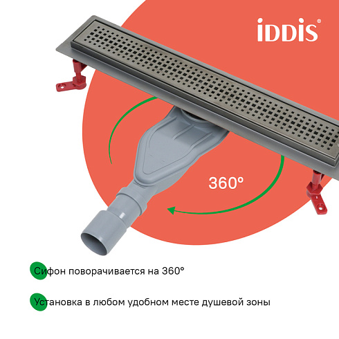 Душевой лоток IDDIS® в цвете графит с горизонтальным выпуском и сифоном 360° предназначен для отведения воды в канализацию из зоны принятия душа. Он заменит традиционные поддоны с бортиками, предлагая универсальный дизайн решетки и возможности для создания стильного интерьера ванной комнаты. Длина решетки — 600 мм; подходит для плитки толщиной до 12 мм.
