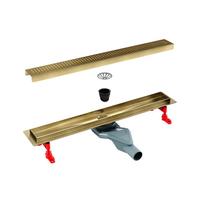 Душевой лоток IDDIS® в золотом цвете с горизонтальным выпуском и сифоном 360° предназначен для отведения воды в канализацию из зоны принятия душа. Он заменит традиционные поддоны с бортиками, предлагая универсальный дизайн решетки и возможности для создания стильного интерьера ванной комнаты. Длина решетки — 600 мм; подходит для плитки толщиной до 12 мм.