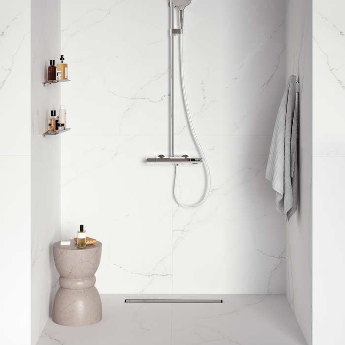 Душевой лоток IDDIS® с двусторонней решеткой, горизонтальным выпуском и сифоном 360° предназначен для отведения воды в канализацию из зоны принятия душа. Он заменит традиционные поддоны с бортиками, предлагая универсальный дизайн решетки и возможности для создания стильного интерьера ванной комнаты. Длина решетки — 600 мм; подходит для плитки толщиной до 12 мм. Цвет – хром.