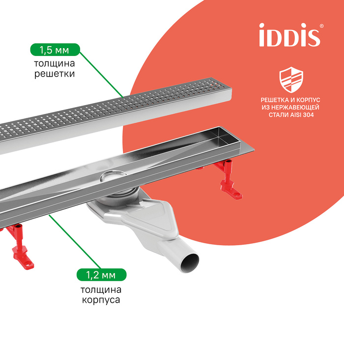 Душевой лоток IDDIS® в цвете хром с горизонтальным выпуском и сифоном 360° предназначен для отведения воды в канализацию из зоны принятия душа. Он заменит традиционные поддоны с бортиками, предлагая универсальный дизайн решетки и возможности для создания стильного интерьера ванной комнаты. Длина решетки — 600 мм; подходит для плитки толщиной до 12 мм.