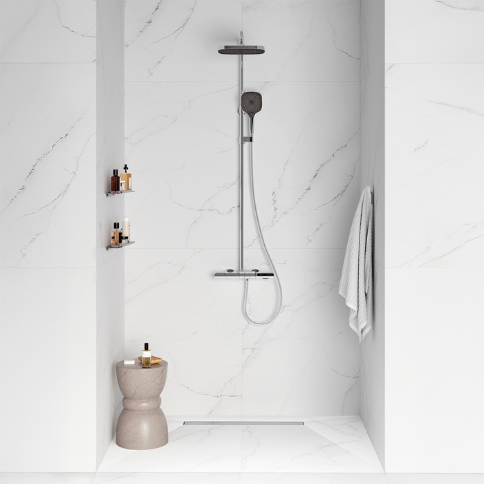 Душевой лоток IDDIS® с двусторонней решеткой, горизонтальным выпуском и сифоном 360° предназначен для отведения воды в канализацию из зоны принятия душа. Он заменит традиционные поддоны с бортиками, предлагая универсальный дизайн решетки и возможности для создания стильного интерьера ванной комнаты. Длина решетки — 700 мм; подходит для плитки толщиной до 12 мм. Цвет – хром.