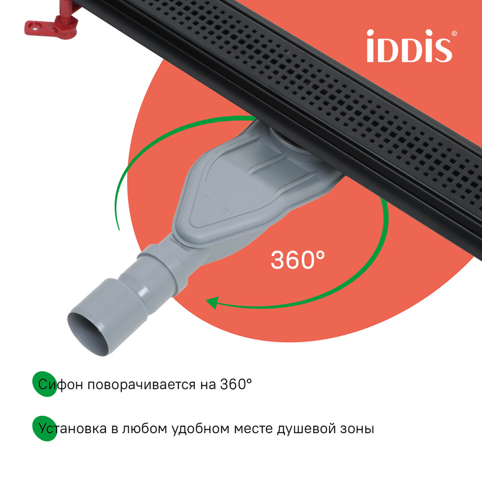 Душевой лоток IDDIS® в черном цвете с горизонтальным выпуском и сифоном 360° предназначен для отведения воды в канализацию из зоны принятия душа. Он заменит традиционные поддоны с бортиками, предлагая универсальный дизайн решетки и возможности для создания стильного интерьера ванной комнаты. Длина решетки — 800 мм; подходит для плитки толщиной до 12 мм.