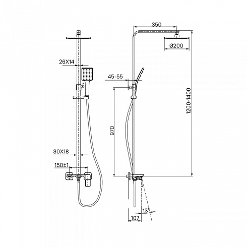 - Размер изделия, мм. 450x200x1400