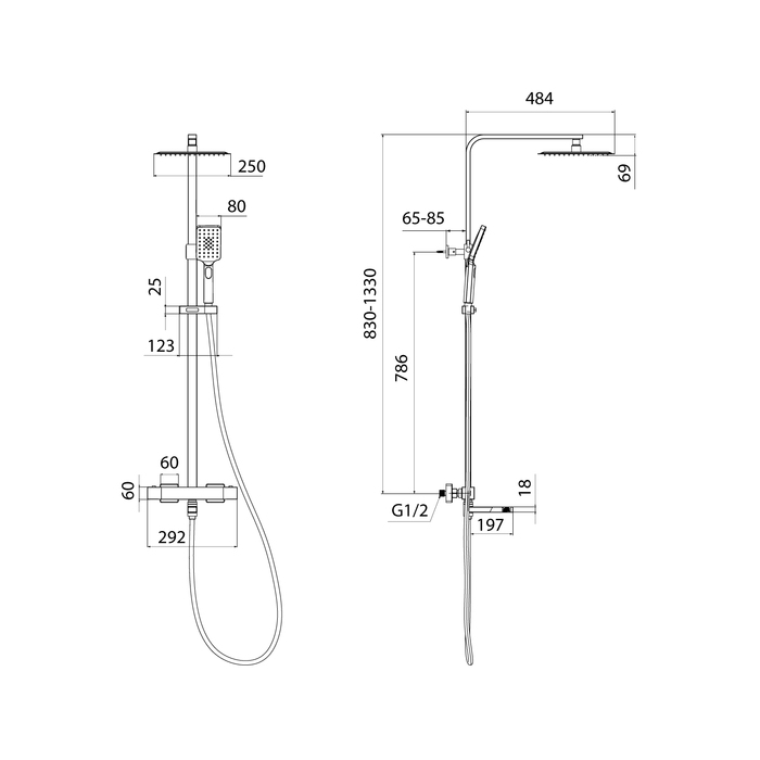 • В комплекте: верхняя ультратонкая лейка из нержавеющей стали 250х250 мм, ручная лейка с 3 режимами 260х80 мм, шланг ПВХ 1,5 м.