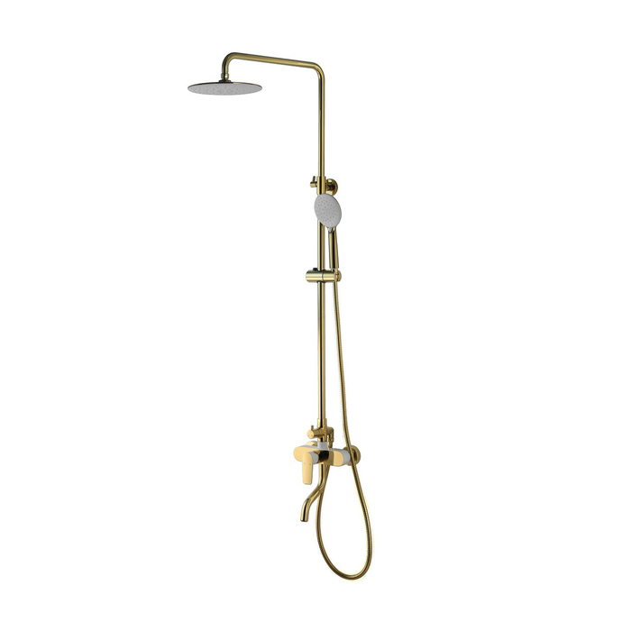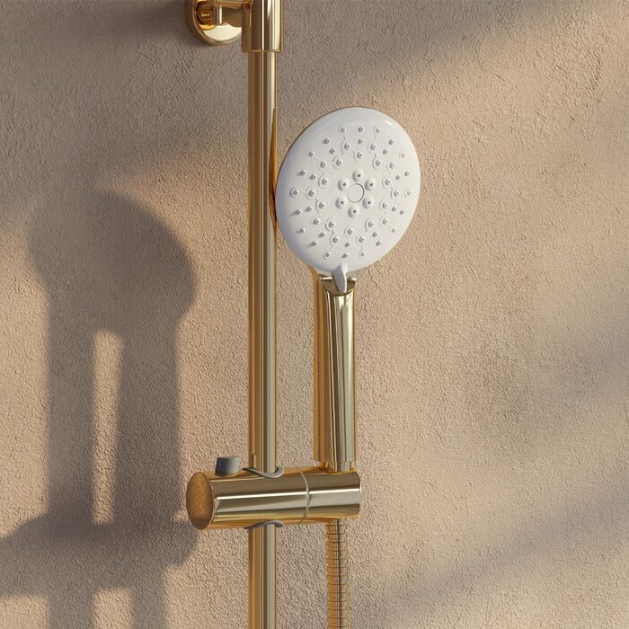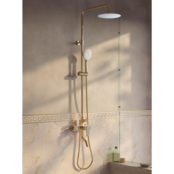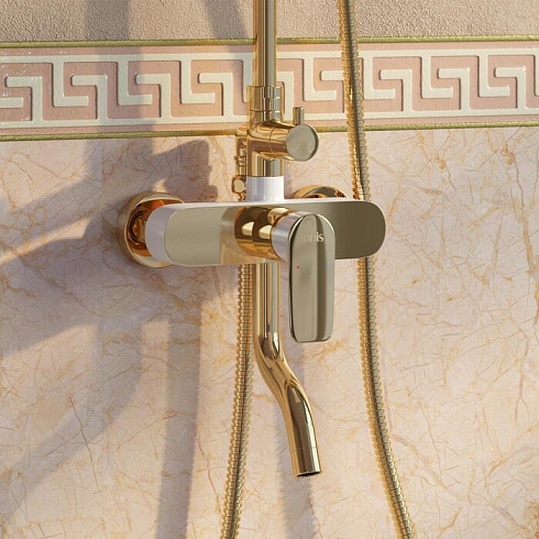 Смеситель для ванны из коллекции Cloud – скромное очарование функциональной роскоши. Элегантное сочетание белого и золотого цветов создает стильный продукт, который подойдет к интерьеру в современном и классическом стиле. Наклон верхней лейки удобно регулируется с помощью шарнирного крепления – так, чтобы каждый член семьи мог настроить его под себя. В комплекте душевые аксессуары в тон смесителю: трехрежимная лейка с держателем и гибкий шланг (1,5 м) для душа в оплетке из нержавеющей стали с защитой от перекручивания.