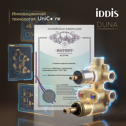 Гарантия на внешние элементы к встраиваемым смесителям IDDIS® – 3 года.