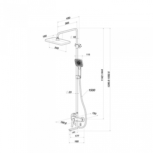 - Высота изделия, мм 1142-1444