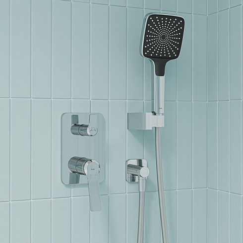 Встраиваемая душевая система Parker в универсальном глянцевом хроме – практичная и стильная, её дизайн сочетает в себе трендовый минимализм форм и четкие грани. Готовый набор включает всё необходимое для создания уютного и функционального пространства: смеситель, верхняя лейка с кронштейном для тропического душа, большая ручная лейка с 3 режимами, душевой шланг 1,5 м и выход для подключения шланга с держателем для лейки.