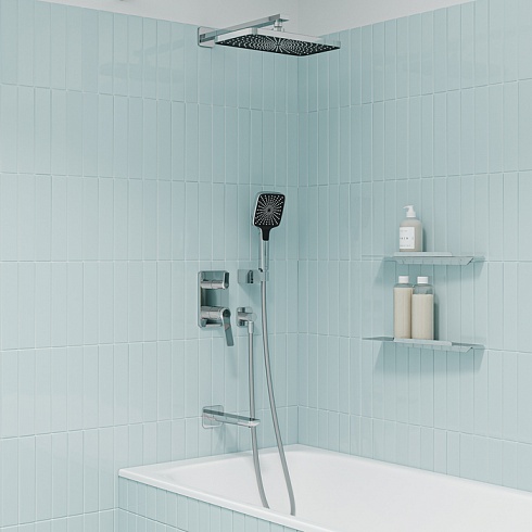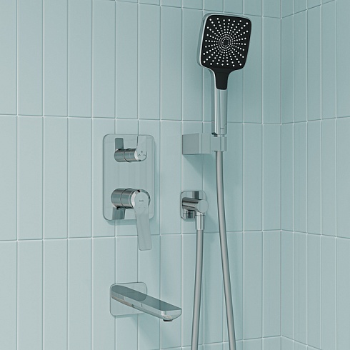 Встраиваемая душевая система Parker в универсальном глянцевом хроме – практичная и стильная, её дизайн сочетает в себе трендовый минимализм форм и четкие грани. Готовый комплект включает всё необходимое для создания уютного и функционального пространства: смеситель, верхняя лейка с кронштейном для тропического душа, настенный излив, большая ручная лейка с 3 режимами, душевой шланг 1,5 м и выход для подключения шланга с держателем.