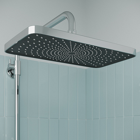 Хромированная душевая система Parker с большим тропическим душем – практичная и стильная, ее дизайн сочетает в себе трендовый минимализм форм и четкие грани. Ручка изящно смотрит вверх под углом, освобождая под собой место для более удобного захвата. Необычный рисунок из форсунок на лейках в виде паутинки превращает душевую систему в красивый акцент ванной.