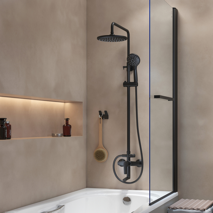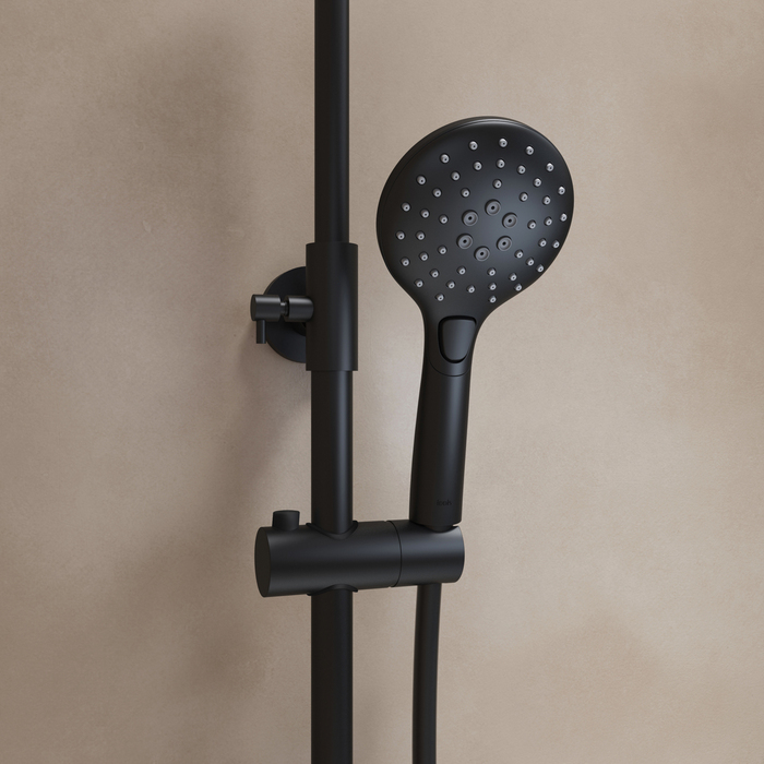Смеситель с верхним душем из коллекции Ray в стильном черном матовом цвете – привлекательное, современное и практичное решение, которое будет органично сочетаться с любым дизайном ванной.