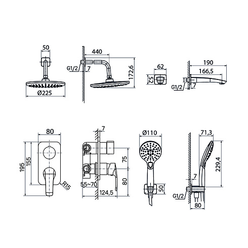 Готовый набор встраиваемой сантехники включает всё необходимое для обустройства комфортной душевой. Так выгоднее и удобнее, чем покупать всё по отдельности.