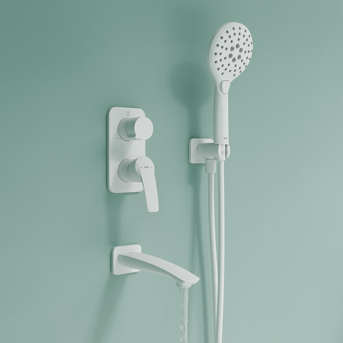 Готовый набор встраиваемой сантехники в матовом белом цвете включает всё необходимое для обустройства комфортной и красивой душевой или ванны. Так выгоднее и удобнее, чем покупать всё по отдельности.