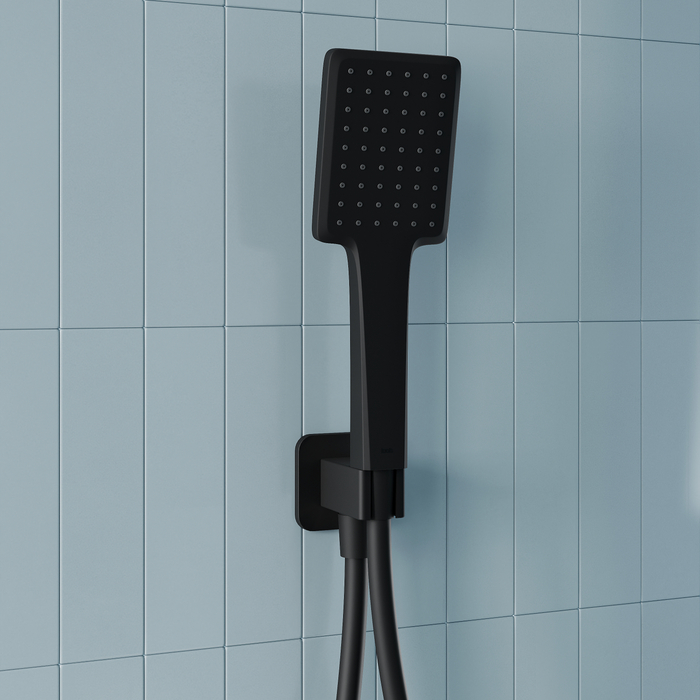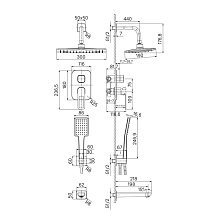 Оптимальная подборка Slide: смеситель, верхняя лейка с кронштейном для тропического душа, излив, ручная лейка, душевой шланг и выход для шланга с держателем для лейки.