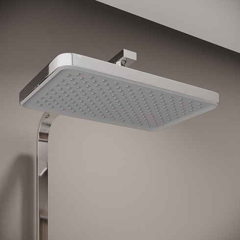 • Верхняя прямоугольная лейка также имеет форсунки с тремя микроотверстиями и создает необычайно мягкий объемный поток воды, идеальный для домашнего тропического душа. Надежный корпус из прочной первичной латуни с пониженным содержанием свинца — стойкий к коррозии, резким изменениям давления и перепадам температуры воды.