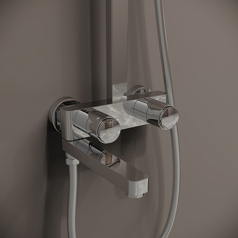 Смеситель Slide для ванны с верхним душем и инновационным кнопочным управлением Push Control – комбинация элегантного дизайна и современных технологий и функций, которые делают пребывание в ванной максимально комфортным и приятным.