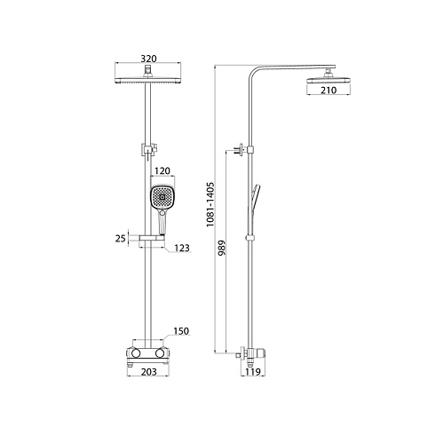 Душевая система с тропическим душем Slide