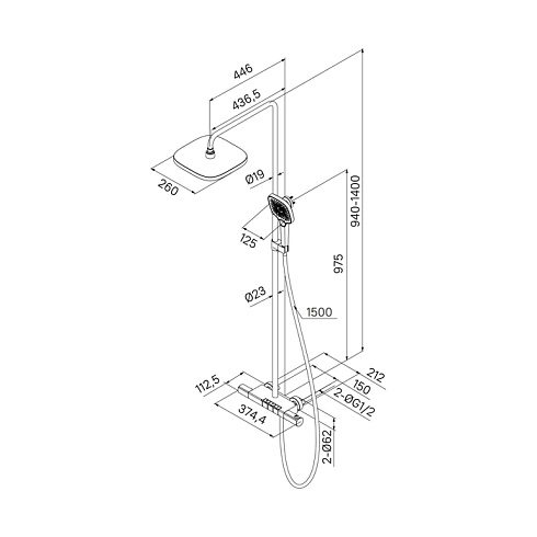 • В комплекте: верхняя лейка 260х260х65 мм, ручная лейка с 3 режимами 270х125 мм, гладкий душевой шланг 1,5 м.