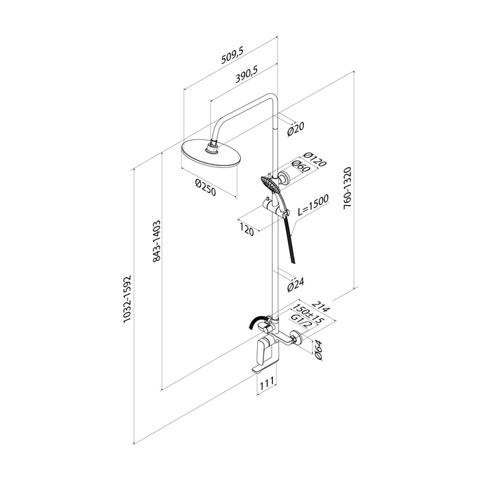 • Высота стойки, мм 843-1403
