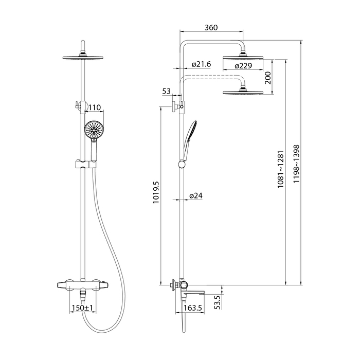 • Регулируемая высота стойки (1,2-1,4 м) позволяет с комфортом принимать душ даже самым высоким.