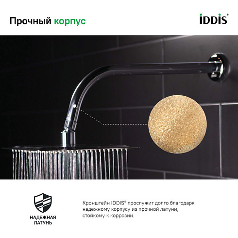 ● Хромированное покрытие душевых аксессуаров IDDIS® устойчиво к коррозии, появлению царапин, сколов и потускнению. На протяжении многих лет они будут выглядеть как новые.