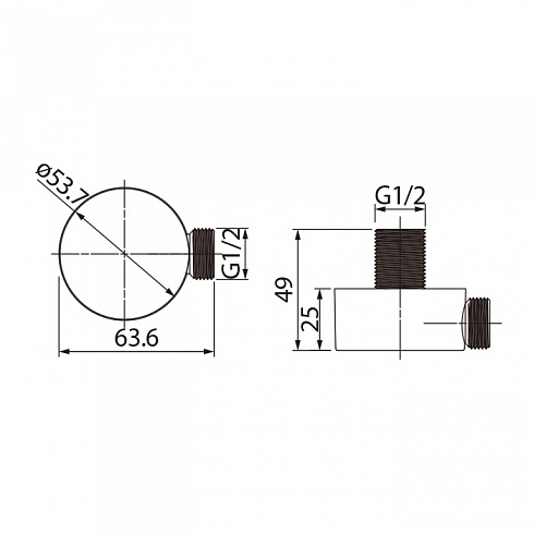 Круглый выход для шланга из коллекции Ray имеет универсальный дизайн и предназначен для комплектации хромированных встраиваемых смесителей. Данный стильный аксессуар обеспечивает качественное соединение душевого шланга и трубопровода посредством стандартного резьбового соединения G½. Благодаря своему компактному размеру и актуальному дизайну выход для шланга IDDIS® будет органично смотреться в интерьере любой современной ванной комнаты.