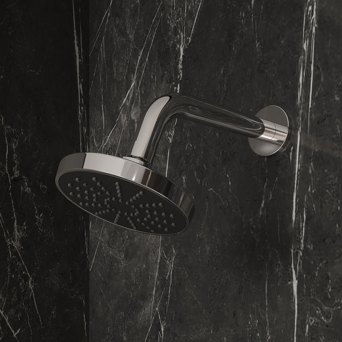 Компактная (диаметр – 116 мм) душевая насадка для душевой зоны небольшого размера. Лицевая панель насадки выполнена в стильном черном цвете, что в сочетании с хромированными элементами, станет ярким акцентом в любом интерьере. Продуманное строение форсунок обеспечивает комфортный напор воды в верхней лейке даже при минимальном давлении воды. Шарнирное крепление позволяет удобно отрегулировать положение лейки.