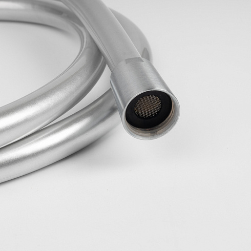 Стильный гладкий душевой шланг в оттенке матового хрома надежен и легко выдерживает активную ежедневную эксплуатацию. Универсальное соединение G ½” позволяет использовать с любой лейкой в тон. Стандартная длина 1,5 м.