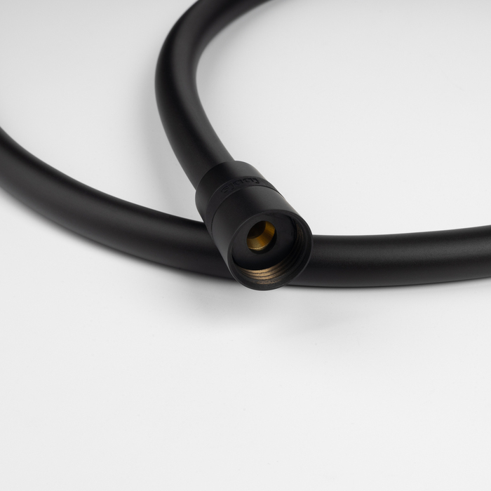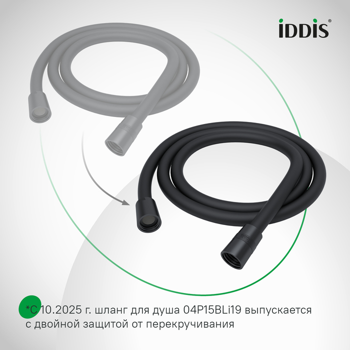 Стильный и надежный шланг для душа легко выдерживает активную ежедневную эксплуатацию большой семьей. Модель стандартной длины (1,5 м) удобна для использования в помещениях с небольшой душевой зоной или ванной. Выполненный из гладкого ПВХ шланг не царапает деликатную поверхность акриловых ванн и поддонов. Привлекательный дизайн шланга позволяет гармонично сочетать его с душевыми лейками в черном цвете, например, с лейками IDDIS® (арт. OPH1FB9i18, арт. SPA3F0Bi18 и арт. SLI3F0Bi18).