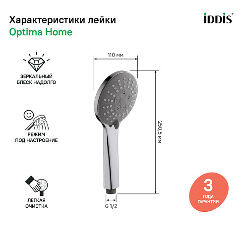 ● Хромированное покрытие лейки IDDIS® устойчиво к коррозии, появлению царапин, сколов и потускнению. На протяжении многих лет они будут выглядеть как новые.