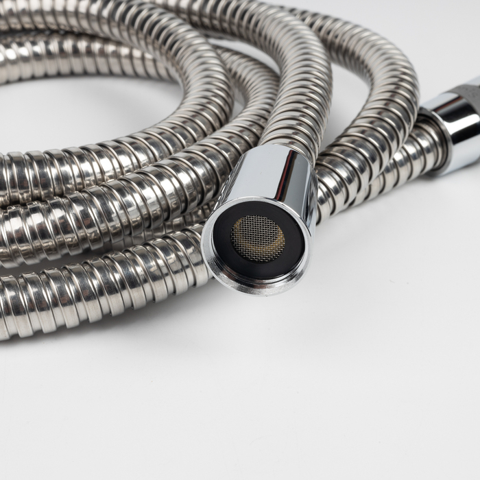 Шланг для душа в классическом дизайне легко выдерживает ежедневную эксплуатацию большой семьей. Модель стандартной длины (1,5 м) удобна для использования в помещениях с небольшой душевой зоной или ванной. Благодаря универсальному соединению подходит для комплектации практически любых хромированных леек. Резиновое кольцо на конической гайке для фиксации шланга в держателе идет в комплекте.