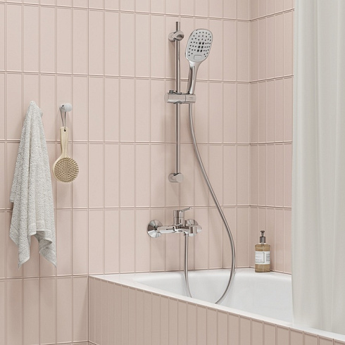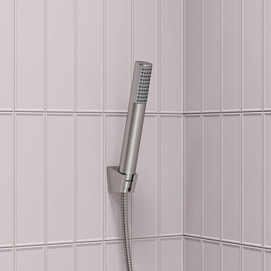 Стальная стойка для душа Agua имеет универсальный дизайн и стандартную конструкцию, которая подойдет к любой душевой зоне и ванне. Оптимальная высота 68 см будет удобна при любом росте. Пластиковый держатель для лейки регулируется по высоте – нужно зажать на нем кнопку и выбрать удобное положение. Наклон лейки в держателе также можно регулировать (поворотом к себе/от себя). Крепеж в комплекте.