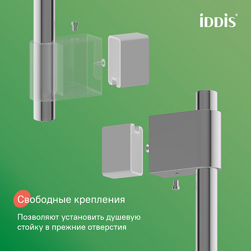 Свободные крепления позволяют установить стойку в прежние отверстия и не портить плитку.