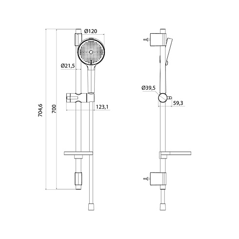 Оптимальный размер душевой стойки – 700 мм.