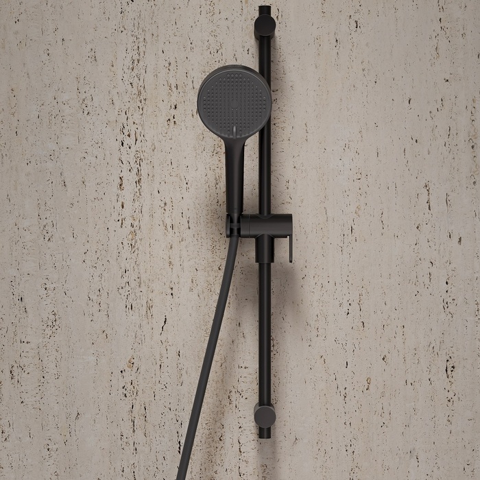 Ручная лейка для душа Aiger (диаметр 120 мм) в черном матовом цвете выглядит красиво, стильно и современно благодаря однотонной темно-серой лицевой части и силиконовым форсункам в тон. Лейка будет гармонично сочетаться с любым одноцветным смесителем и душевым шлангом благодаря универсальному соединению G ½.