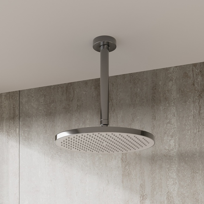 Хромированная круглая верхняя лейка для тропического душа Esper с белой лицевой частью станет отличным дополнением для встраиваемой душевой системы или заменит надоевшую лейку душевого гарнитура. За счет большого диаметра 256 мм лейка создает объемный поток воды, достаточный для комфортного принятия душа. Подходит ко всем кронштейнам со стандартным резьбовым соединением G 1/2”.