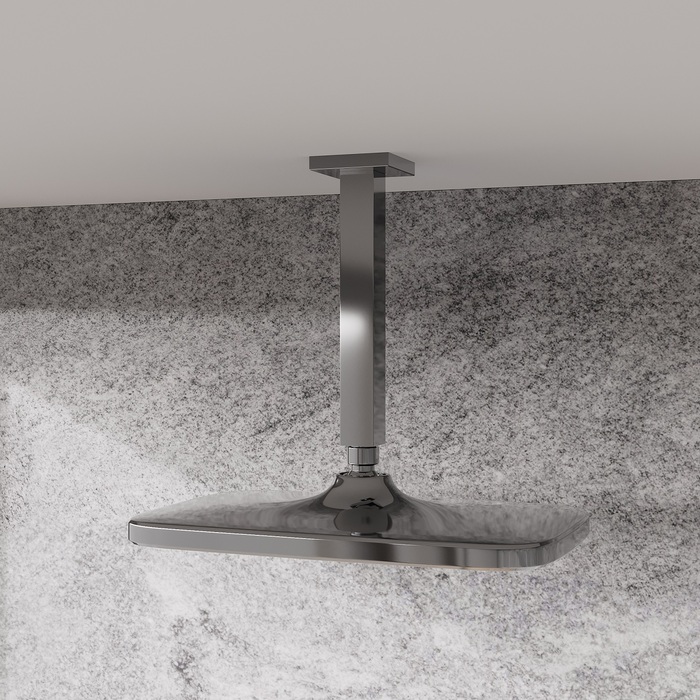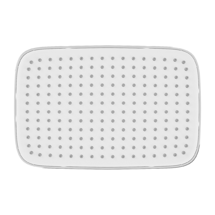 Хромированная прямоугольная верхняя лейка для тропического душа Esper с белой лицевой частью станет отличным дополнением для встраиваемой душевой системы или заменит надоевшую лейку душевого гарнитура. За счет большого размера лейка создает объемный поток воды, достаточный для комфортного принятия душа. Подходит ко всем кронштейнам со стандартным резьбовым соединением G 1/2”.