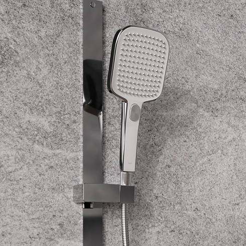 • Переключение режимов осуществляется красивой удобной кнопкой. Она не утоплена, а чуть выступает над поверхностью лейки – чтобы было комфортно, в том числе, девушкам с длинными ногтями.