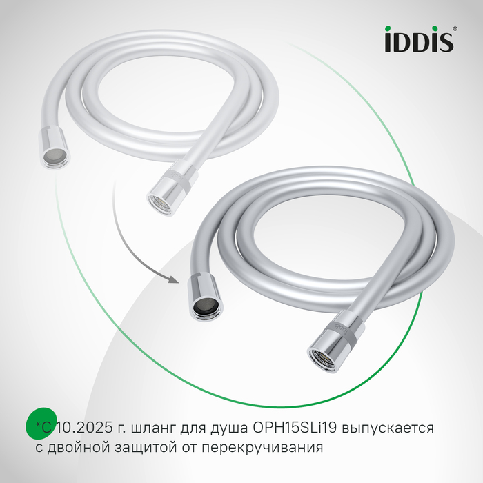Силиконовый шланг Optima Home стандартной длины (1,5 м) будет удобен для использования людьми любого роста в помещениях с небольшой душевой зоной. Стильный серебряный оттенок и универсальный дизайн позволяют сочетать его с любой хромированной лейкой. Например, из широкого ассортимента леек для душа IDDIS®.