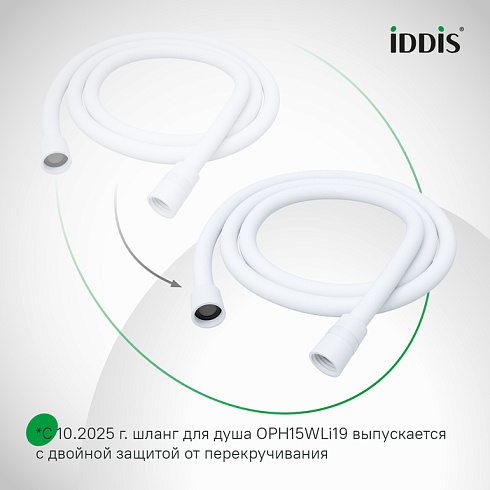 Силиконовый шланг Optima Home стандартной длины (1,5 м) будет удобен для использования людьми любого роста в помещениях с небольшой душевой зоной. Трендовый белый цвет и универсальный дизайн позволяют сочетать его с любой лейкой в тон. Например, с душевыми лейками IDDIS® (арт. RAY3F0Wi18, арт. SLI1F0Wi18 или арт. OPH3F0Wi18).